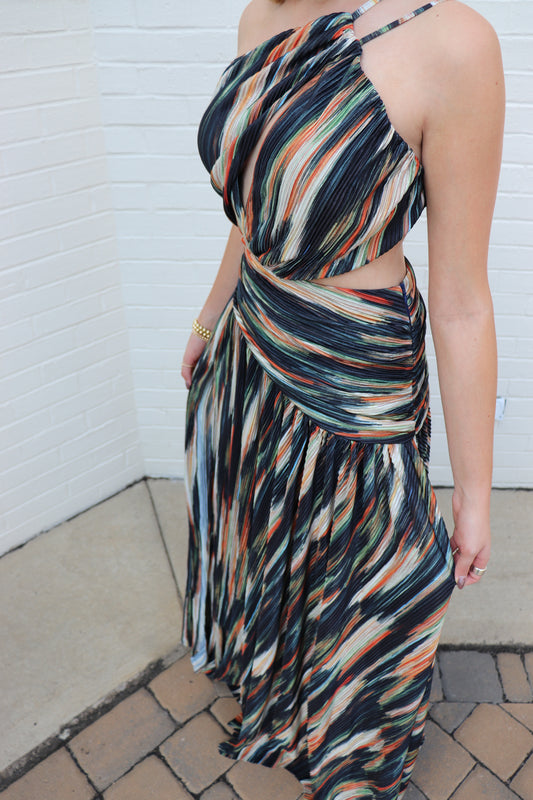 Pleated Multi Color Maxi Dress